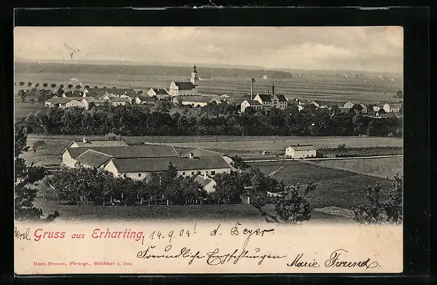 AK Erharting, Ortsansicht mit Feldern