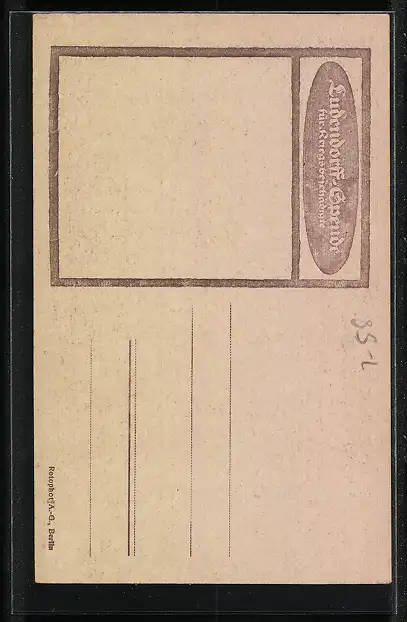Personenbezogene Daten auf der Rückseite der Karte wurden durch blauen Textmarker unkenntlich gemacht. Die blauen Stellen sind auf die Vorderseite durchgeweicht und wirken sich negativ auf das Postkartenfoto aus