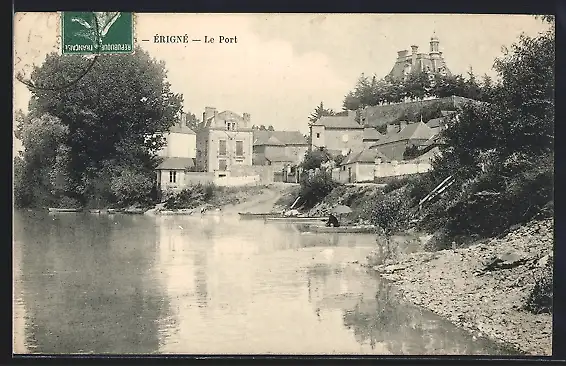 AK Érigné, Le Port avec vue sur la rivière et bâtiments environnants