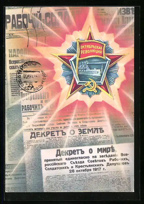 AK Erinnerung and die Oktoberrevolution mit Zeitungsausschnitten
