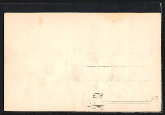 Personenbezogene Daten auf der Rückseite der Karte wurden durch blauen Textmarker unkenntlich gemacht. Die blauen Stellen sind auf die Vorderseite durchgeweicht und wirken sich negativ auf das Postkartenfoto aus