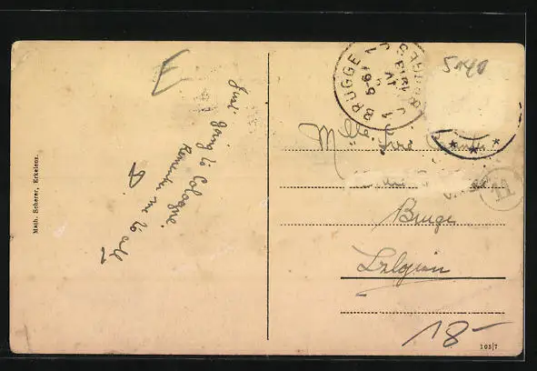alte Ansichtskarte, gelaufen, Briefmarke entfernt, rückseitig Oberflächenschaden, Eckknicke re., Stempelspur, guter Zustand