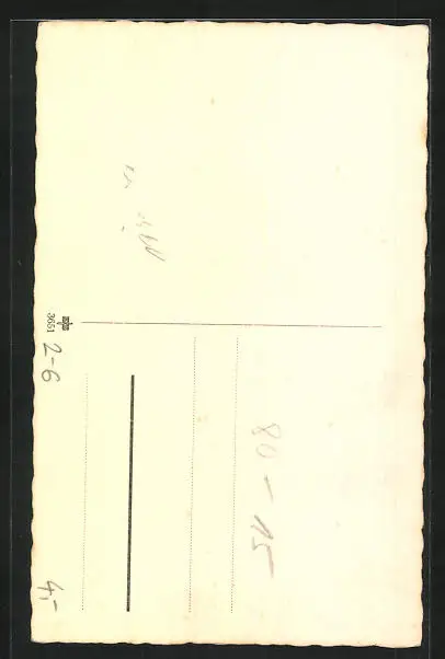 Personenbezogene Daten auf der Rückseite der Karte wurden durch blauen Textmarker unkenntlich gemacht. Die blauen Stellen sind auf die Vorderseite durchgeweicht und wirken sich negativ auf das Postkartenfoto aus