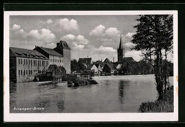 AK Erlangen-Bruck, Blick vom Wasser zur Kirche