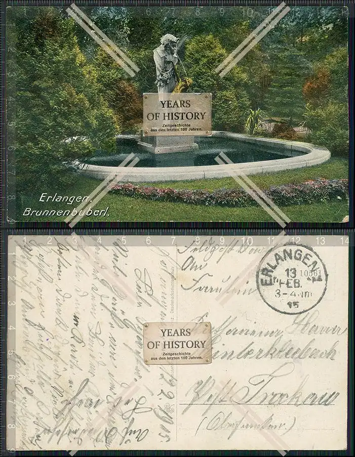 AK Erlangen Brunnenbuberl 1915 Feldpost gelaufen