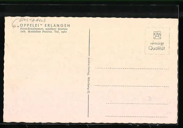 Personenbezogene Daten auf der Rückseite der Karte wurden durch blauen Textmarker unkenntlich gemacht. Die blauen Stellen sind auf die Vorderseite durchgeweicht und wirken sich negativ auf das Postkartenfoto aus
