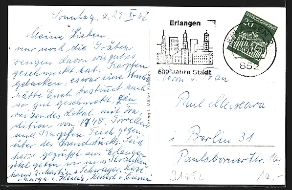 alte Ansichtskarte, gelaufen 1967, guter Zustand
