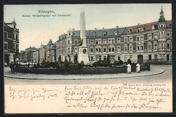 AK Erlangen, Kaiser Wilhelmplatz mit Denkmal