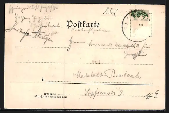 alte Ansichtskarte, gelaufen, Briefmarke entfernt, rückseitig Oberflächenschaden, guter Zustand