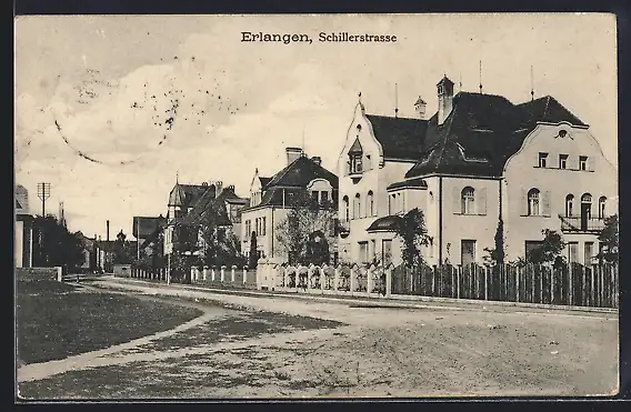 AK Erlangen, Schillerstrasse mit Wohnhäusern