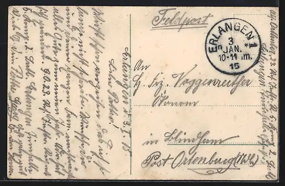 alte Ansichtskarte, gelaufen 1915, Stempelspur, Bugspur re. oben, guter Zustand