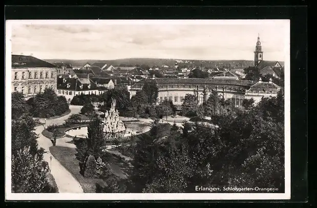 AK Erlangen, Schlossgarten-Orangerie aus der Vogelschau