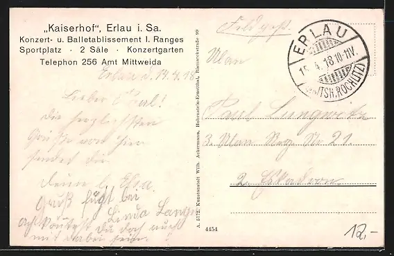 alte Ansichtskarte, gelaufen 1918, guter Zustand