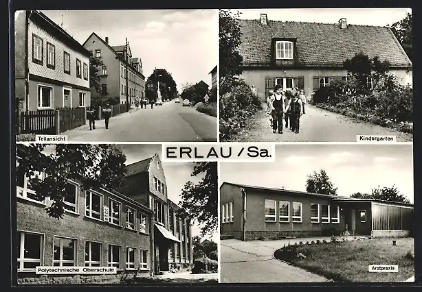 AK Erlau i. Sa., Kindergarten, Arztpraxis, Polytechnische Oberschule