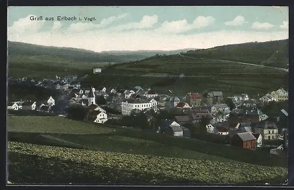 AK Erlbach i. Vogtl., Ortsansicht mit Umgebung