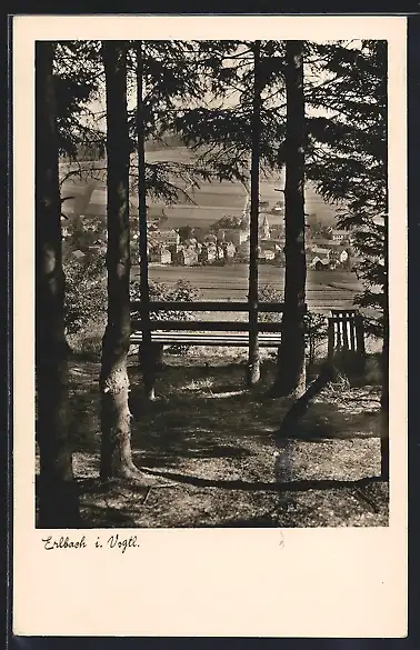 AK Erlbach i. Vogtl., Ortsansicht von Anhöhe aus