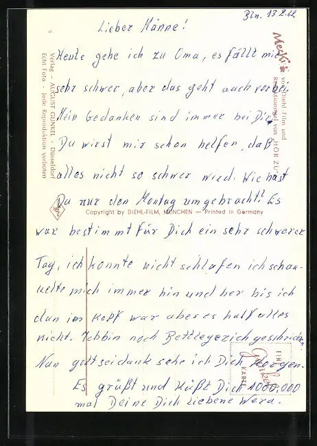 ungelaufen, Rückseite beschrieben 1962, guter Zustand