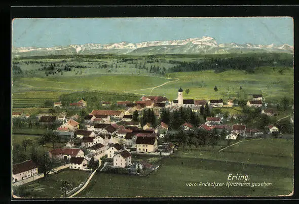 AK Erling, Ortsansicht vom Andechser Kirchturm aus gesehen