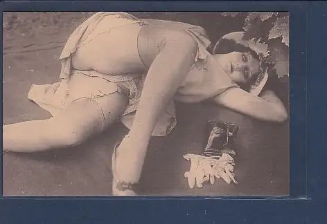AK Erotik Frau liegend mit entblößten Po