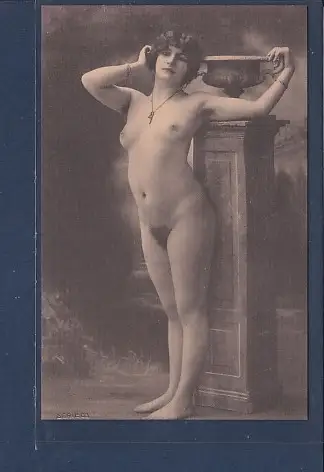 AK Erotik Frau nackt stehend an einer Säule, nicht gelaufen