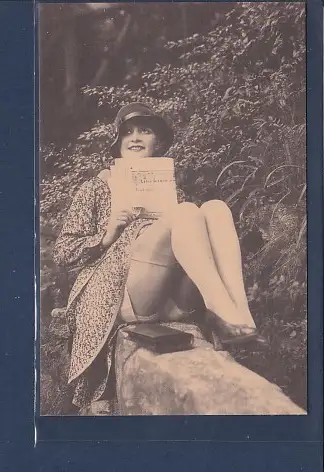AK Erotik Frau sitzend auf Mauer