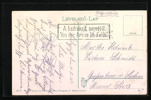 Personenbezogene Daten auf der Rückseite der Karte wurden durch blauen Textmarker unkenntlich gemacht. Die blauen Stellen sind auf die Vorderseite durchgeweicht und wirken sich negativ auf das Postkartenfoto aus