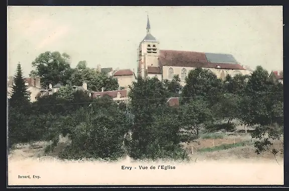 AK Ervy, Vue de l`Église et des environs verdoyants