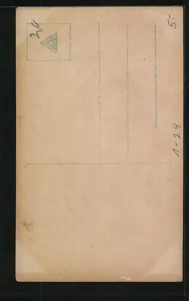 Personenbezogene Daten auf der Rückseite der Karte wurden durch blauen Textmarker unkenntlich gemacht. Die blauen Stellen sind auf die Vorderseite durchgeweicht und wirken sich negativ auf das Postkartenfoto aus