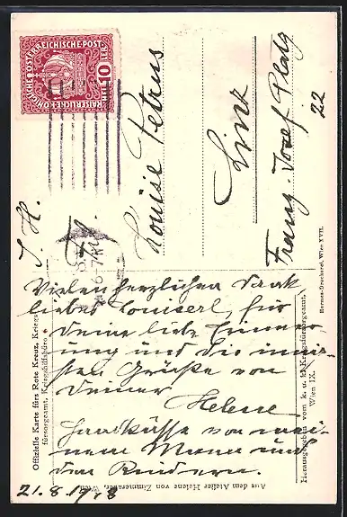 Personenbezogene Daten auf der Rückseite der Karte wurden durch blauen Textmarker unkenntlich gemacht. Die blauen Stellen sind auf die Vorderseite durchgeweicht und wirken sich negativ auf das Postkartenfoto aus