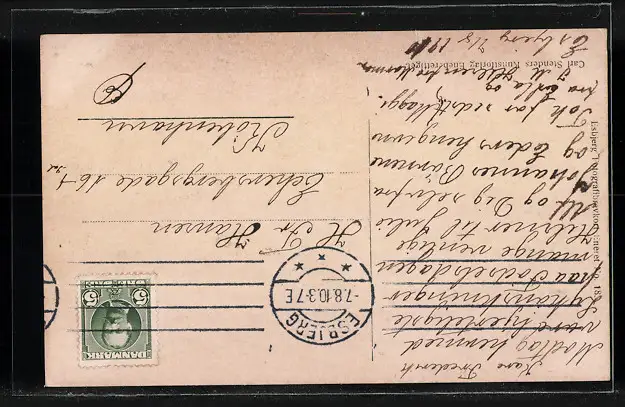 alte Ansichtskarte, gelaufen 1910 kleiner Einriss li. oben, Stempelspur, guter Zustand