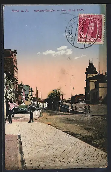 AK Esch a. A., Bahnhofstrasse mit Passanten
