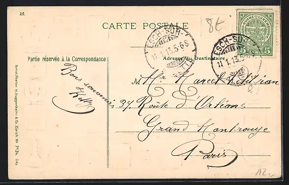 alte Ansichtskarte, gelaufen 1913, guter Zustand