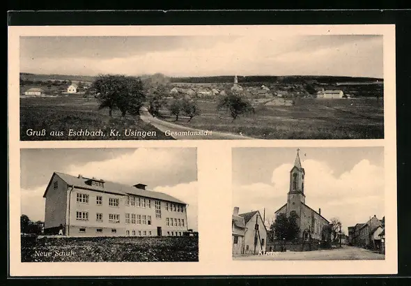 AK Eschbach / Usingen, Neue Schule, Kirche, Gesamtansicht
