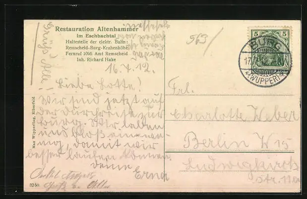 alte Ansichtskarte, gelaufen 1912, guter Zustand