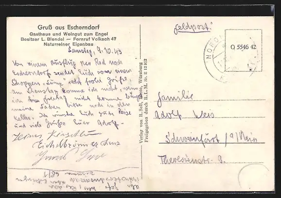 AK Escherndorf, Gasthaus und Weingut zum Engel, Ortsansicht