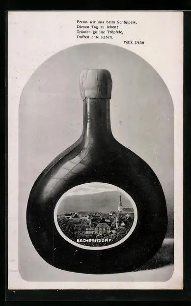 AK Escherndorf, Ortsansicht auf Weinflasche