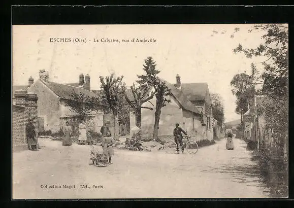AK Esches, Le Calvaire, rue d`Andeville