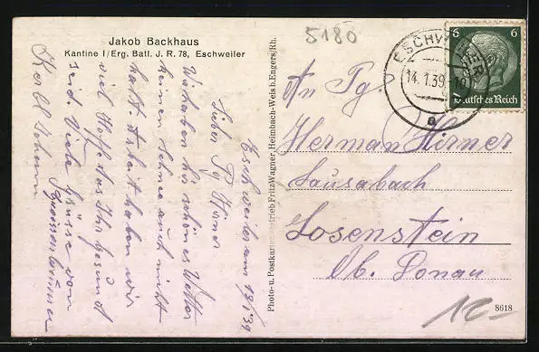 alte Ansichtskarte, gelaufen 1939, guter Zustand