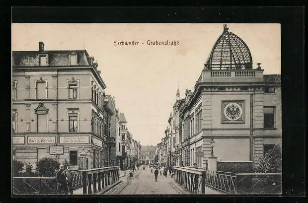 AK Eschweiler, Grabenstrasse mit Brücke