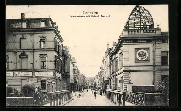 AK Eschweiler, Grabenstrasse mit Kaiserl. Postamt