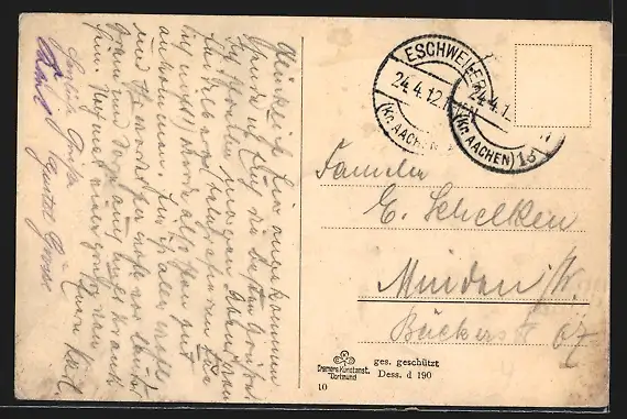alte Ansichtskarte, gelaufen 1912, Briefmarke entfernt, guter Zustand