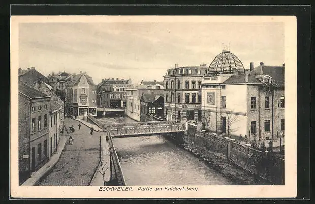 AK Eschweiler, Partie am Knickertsberg mit Geschäften und Brücke