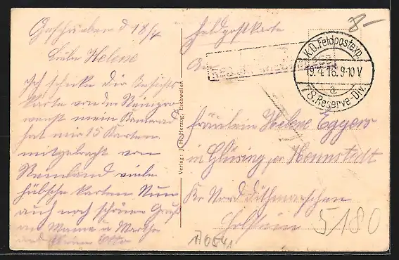 alte Ansichtskarte, gelaufen 1916, Eckknicke unten, guter Zustand