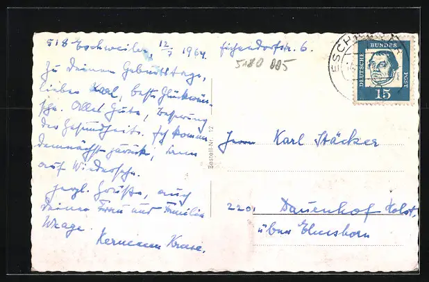 alte Ansichtskarte, gelaufen 1964, guter Zustand