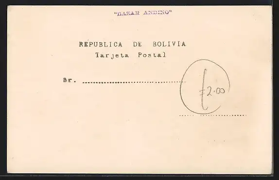 Personenbezogene Daten auf der Rückseite der Karte wurden durch blauen Textmarker unkenntlich gemacht. Die blauen Stellen sind auf die Vorderseite durchgeweicht und wirken sich negativ auf das Postkartenfoto aus