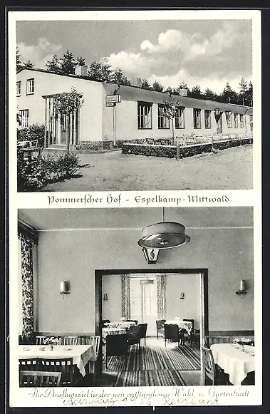 AK Espelkamp-Mittwald /Lübbecke, Pension Pommerscher Hof v. Emil Schmidt, mit Innenansicht