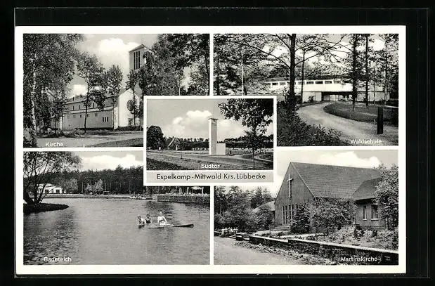 AK Espelkamp-Mittwald bei Lübbecke, Südtor, Waldschule, Martinskirche