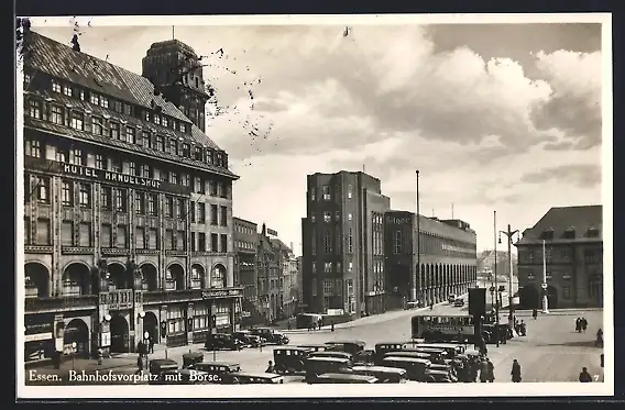 AK Essen, Bahnhofsvorplatz mit Hotel Handelshof und Börse