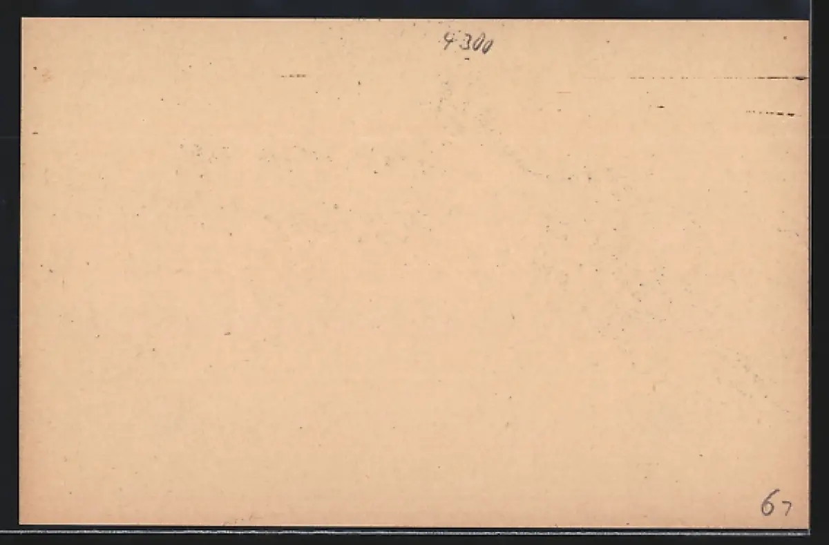 Personenbezogene Daten auf der Rückseite der Karte wurden durch blauen Textmarker unkenntlich gemacht. Die blauen Stellen sind auf die Vorderseite durchgeweicht und wirken sich negativ auf das Postkartenfoto aus
