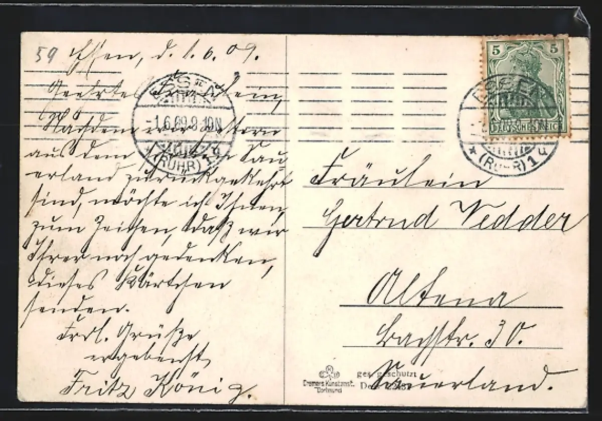 alte Ansichtskarte, gelaufen 1909, guter Zustand